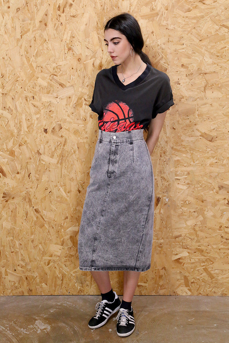 80s Grey Stonewash Denim Midi Skirt